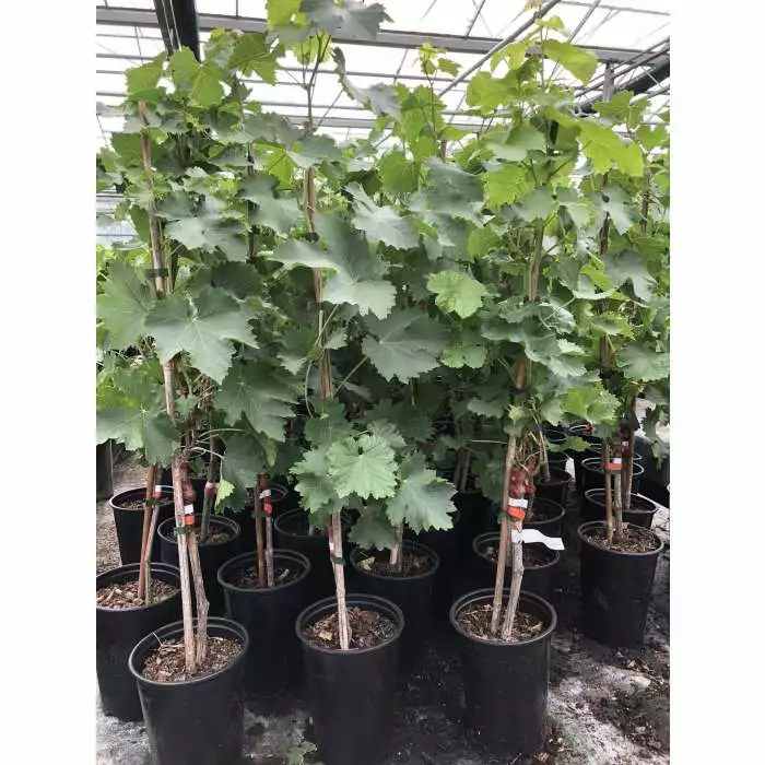 This particular grape is a really convenient way to extend grape yields as it develops later than most other grape vines and is a heavy cropper. In fact, we’d recommend a strong wire trellis system or suitably strong alternative and special care in pruning their vigorous vines to keep under control.