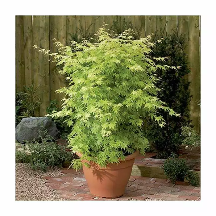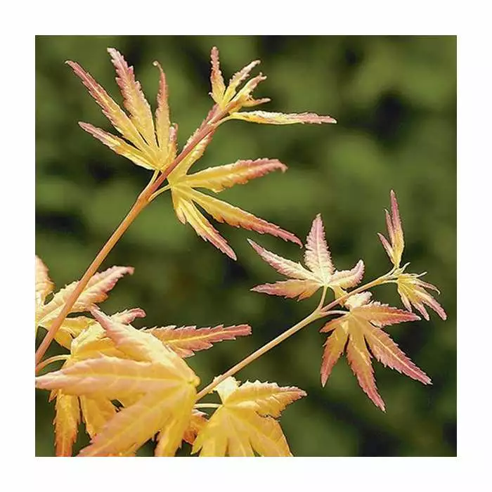 The ‘Orange Dream’ is an upright, spreading Japanese maple tree that exhibits ever-changing foliage year round. In autumn, a burnt-orange colour encapsulates the foliage before turning a bright green in the summer. In autumn, alluring clusters of thin red flowers beautifully contrast bright green leaves. This small, bushy deciduous tree is perfect for patio containers or as a focal point for a smaller garden.