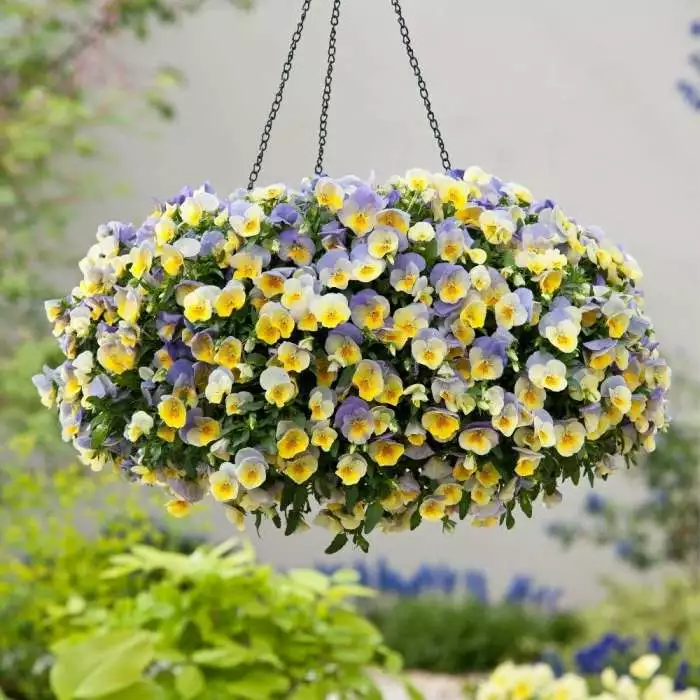 A winter flowering easyplanter with lilac and yellow bi-floral pansies. Position: full sun or partial shade Soil: general-purpose potting compost Rate of growth: average to fast Flowering period: milder spells from autumn to spring Hardiness: fully hardy but often short-lived Creating a wonderful display in your winter baskets could not be easier, because these ‘Blueberry Swirl’ pansies have been ready-planted into a plastic tray. Therefore, when you receive it, all you need to do is half-fill your hanging basket with compost (you will need one with a diameter of at least 30cm), place the tray on top, and fill in any gaps around the edges with a bit more compost before giving it all a good water. The roots of the plants can grow through the base of the plastic tray and into the compost below, so provided it is kept well watered, the plants will soon start to fill out. Each pre-prepared tray measures 30cm in diameter and 8cm high, and contains a colourful mixture of pansy plants. The trays also contain a slow release fertiliser that will get the plants off to a flying start. Made from 100% recycled plastic, the trays can be widely recycled after your bedding displays have finished. Alternatively, reuse them as bulb baskets – place a layer of compost in the bottom, add bulbs and plant out in the garden. When the flowers fade, lift the basket and store the bulbs ready for another year. Please be aware that the hanging basket or pot in the photographs are not supplied with the plants, however we do have a wonderful range on our website to choose from.