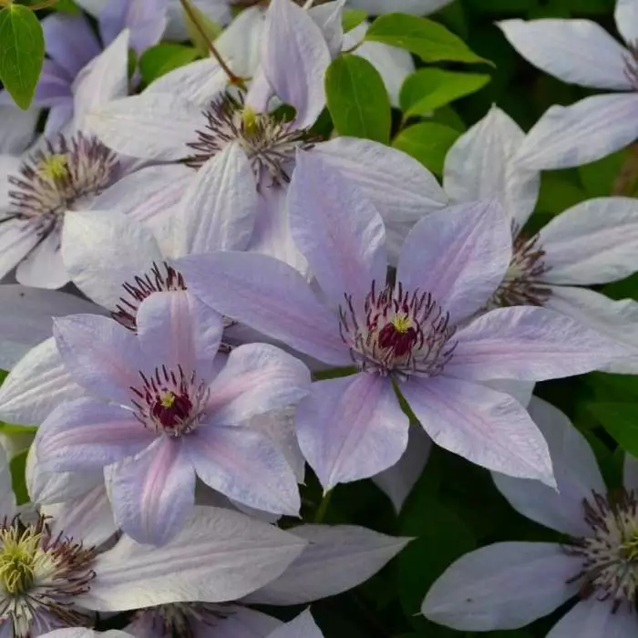A low-growing, late-flowering clematis. Position: full sun or partial shade Soil: fertile, well-drained, neutral soil Rate of growth: average Flowering period: July to September Hardiness: fully hardy A compact, late-flowering clematis, which is ideal for larger pots or smaller gardens. The flowers start to appear in midsummer and initially they are a very subtle mix of lavender-blue, pink and cream, but as they age, they fade to a soft silvery blue, which is accented by the boss of burgundy-flushed stamens. Each one can grow up to 10cm across, so they really look exquisite when clambering through the trellis or over an obelisk. Garden care: Cut back the stems to the base of the plant each winter and apply a mulch of well-rotted garden compost around the plant, avoiding the immediate crown.