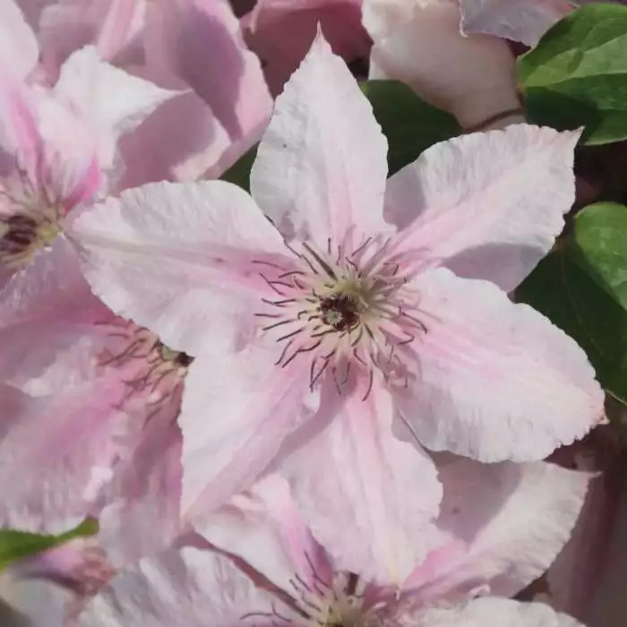 Ideal for containers. Position: full sun or partial shade Soil: fertile, well-drained soil, neutral soil Rate of growth: fast-growing Flowering period: July to September Hardiness: fully hardy Pale candyfloss-pink summer flowers with deeper pink stripes, fading to whitish-pink, and reddish-brown centres. This compact, yet vigorous late-flowering clematis makes a perfect patio plant. It is best in partial or dappled shade since the delicate petals fade in intense sunlight. Garden care: In early spring cut back the previous year’s stems to a pair of strong buds about 15-20cm (6-8in) above ground-level and apply a slow-release balanced fertiliser and a mulch of well-rotted garden compost around the plant, avoiding the immediate crown.