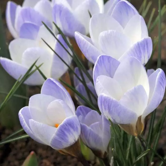 Silvery mauve goblets in late winter. Position: full sun Soil: gritty, poor to moderately fertile, well-drained soil Rate of growth: average Flowering period: February to March Hardiness: fully hardyYellow-throated, white flowers with soft, silvery, lilac-blue outer petals in February and March, framed by slender, strap-shaped, grey-green leaves. Versatile and easy to grow, these spring-flowering bulbs are suitable for naturalising in grass or planting in sunny areas of a rock garden or shrub border. They need well-drained soils and prefer dry summers. Garden care: After flowering, they can be planted out in clusters to form naturalistic drifts 10cm deep where they can be left undisturbed for several years. Keep a lookout for damage by mice or squirrels. This can sometimes be avoided by laying a piece of chicken wire over the bulbs before you cover them with soil. If you are growing these in grass, avoid mowing it until the leaves have completely died back.