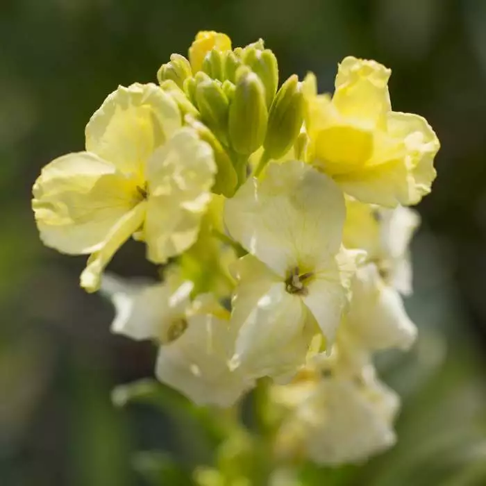 Masses of palest yellow spring flowers. Position: full sun Soil: poor to moderately fertile, well-drained, neutral to alkaline soil Rate of growth: average to fast-growing Flowering period: March to May Hardiness: hardy biennial These are sold as bare-root plants, which have recently been dug up from the ground. Therefore, they will look a bit wilted and sad when they arrive, however field grown plants are usually stronger. They should be planted out as soon as possible, and they will usual pick up when they have settled in. Opening soft lemon before quickly turning a pale buttery shade, the flowers of this wallflower provide a soothing backdrop for strong purples and plums, as well as strengthening predominantly white and creamy bedding dispalys. A firm favourite in the spring garden, they are very easy to grow and the flowers also have a spicy scent. Garden care: Provide cloche protection where frosts are very severe or prolonged.