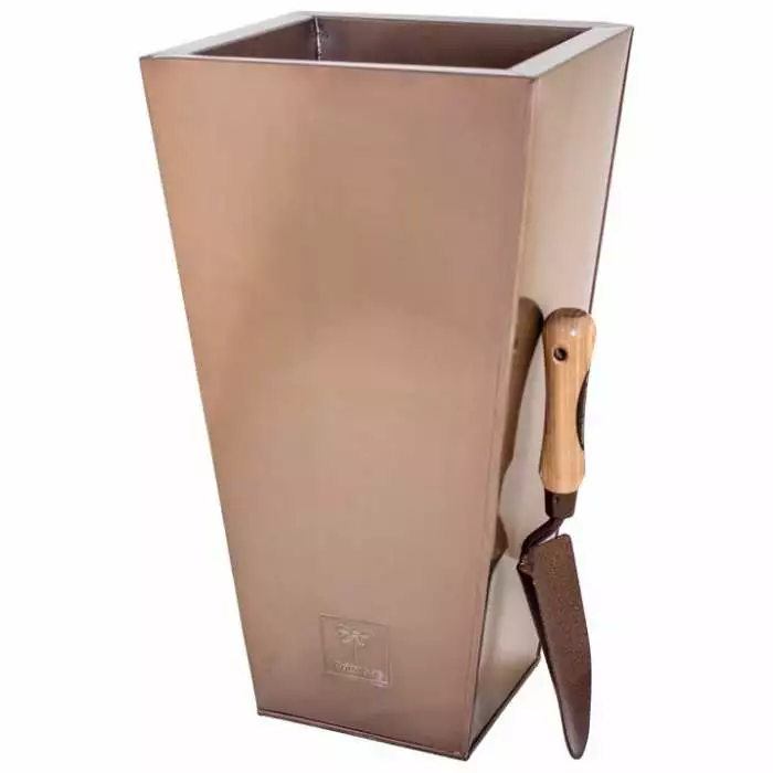 This contemporary zinc flared square planter has a stunning copper finish which will beautifully offset the plants in your garden, complementing their natural beauty with the stylish design. The galvanised finish offers a high resistance to the elements, meaning that this planter offers both style and realibility.