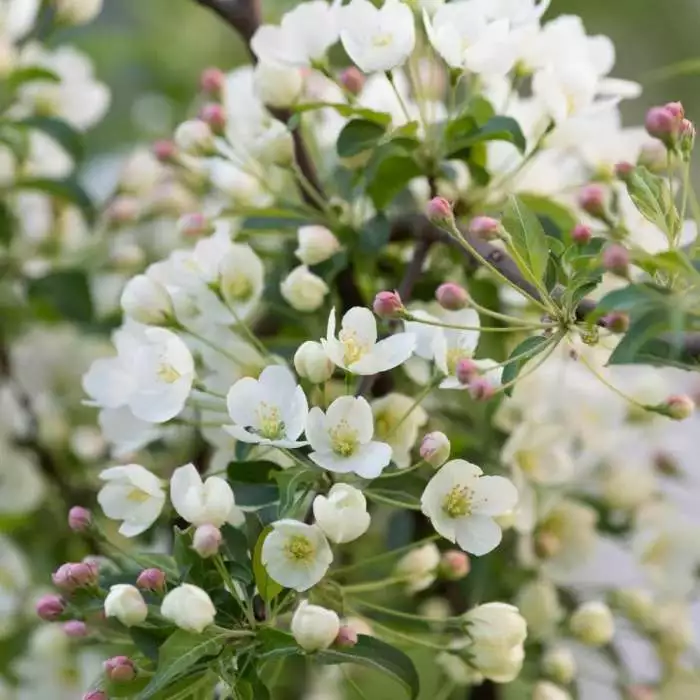 A magnificent small tree. Position: full sun or partial shade Soil: fertile, well-drained soil Rate of growth: average Flowering period: May Hardiness: fully hardy A very pretty crab apple, that makes an excellent addition to smaller gardens. In spring, it produces a mass of ivory-white flowers, just as the fresh green leaves start to appear. From late summer, these are followed by dark red fruits, which remain until well into winter. Perfect for a small garden or large pot. Garden care: When planting incorporate lots of well-rotted garden compost in the planting hole and stake firmly. Remove dead, diseased and crossing branches while the tree is dormant.