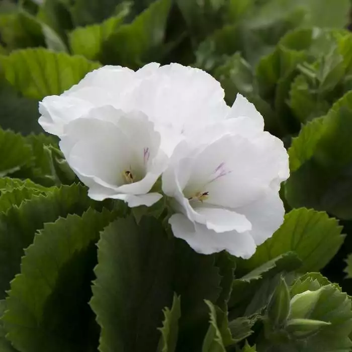 A tender plant will usually flower non-stop all summer. Position: full sun or partial shade Soil: fertile, well-drained soil Rate of growth: fast growing Flowering period: May to November Hardiness: tender White flowers are always popular, looking sophisticated and stylish, and this pelargonium ticks all these boxes. Large trumpet shaped flowers borne in clusters above bushy mid-green leaves are fabulous for summer bedding schemes, patio pots, windowboxes and hanging baskets. A tender plant, it will usually flower non-stop all summer, carrying on well into the autumn, usually until it is hit by the first frost. The pot shown is not included, however, if you wish to pot yours up, we do have a wide range of pots on our website to choose from. Garden care: Pot up your pelargoniums, but only place them outside in the garden after the risk of frost has passed. Remove the spent flowers as they fade, and keep them well fed using a dilute solution of a high-potash liquid fertiliser (Tomorite is ideal) at regular intervals. If you want to keep them over the winter, move them to a frost free environment and avoid overwatering during the colder months.