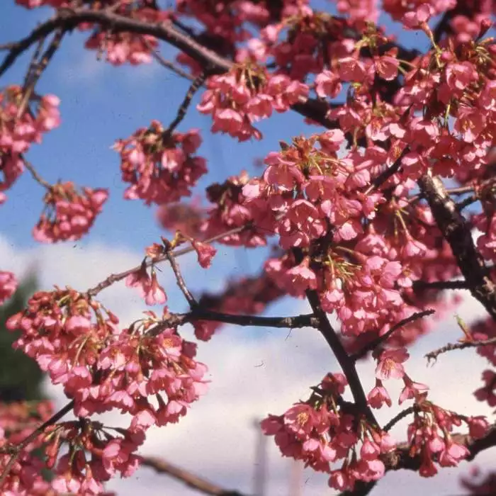 Masses of deep pink single flowers in mid March,followed by rich autumn colours of red and gold. The perfect cherry tree for a smaller garden.