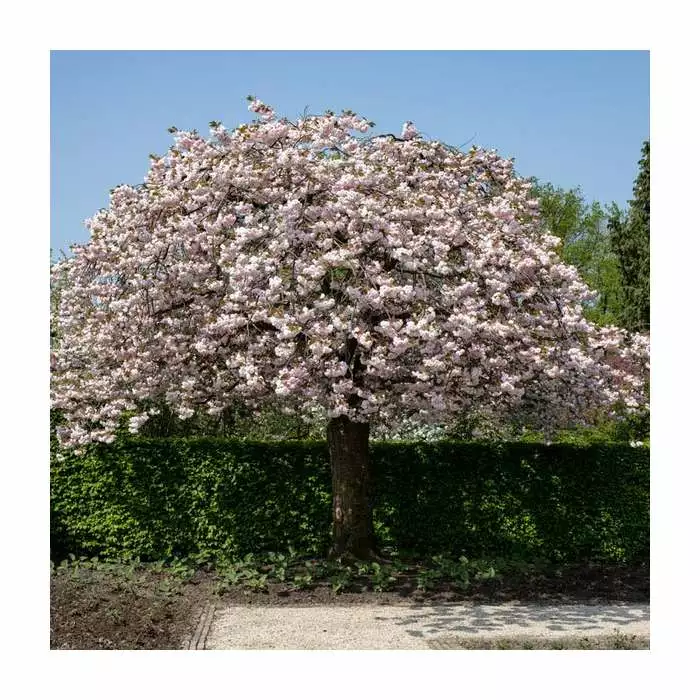 Meaning ‘White God’ in Japanese, the Shirofugen cherry is a open branched and spreading tree that is well loved by gardeners due to its beautiful double white blossom which are much longer lasting than other cherry trees. Leaves that begin their life in shade of bronze-red, turn to green before finishing up in the autumn in a lovely orange-red colour.