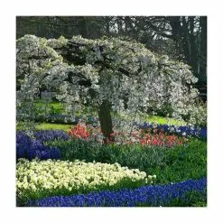 This Yoshino Cherry has a graceful weeping form. When the flowers open in early spring it is transformed into fragrant cascades of snow-white blossom. It has lovely autumn foliage in shades of orange and yellow.