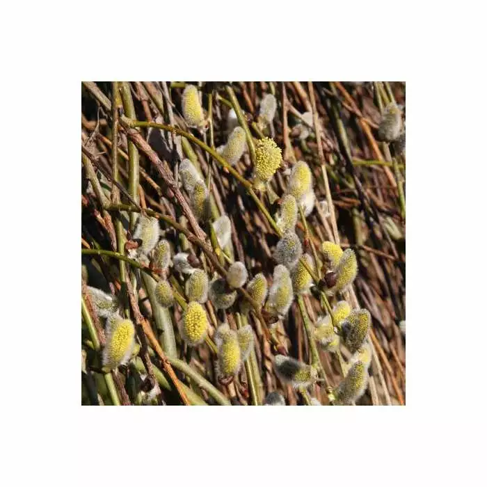 A bushy tree, this willow has a dense, weeping style to it and provides year-round interest. Bright grey fuzzing anthers emerge from its graceful pendulous shoots in the spring before the rich green ovate foliage appears.