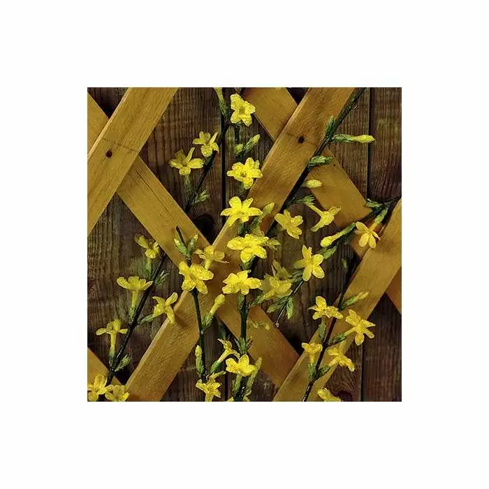 The flowers of Jasminium nudiflorum, also known as ‘Winter Jasmine’, will bring colour and life to your garden, even on the darkest winter days when nothing else seems to grow. The small, delicate, yellow flowers appear in January and are accompanied by gorgeous, dark-green, glossy foliage that will easily fill empty spaces in beds or borders.